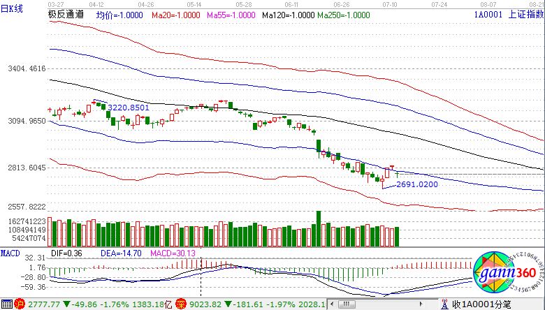 滬指跌1.76%,報(bào)2777點(diǎn);深成指跌1.97%,報(bào)9023點(diǎn);創(chuàng)業(yè)板指跌1.88%,報(bào)1563點(diǎn)。盤面上看,知識(shí)產(chǎn)權(quán)保護(hù)、網(wǎng)絡(luò)安全、大飛機(jī)、無人零售、國產(chǎn)軟件、人臉識(shí)別等板塊跌幅居前。滬股通凈流入2.6億,深股通凈流出3.3億。相應(yīng)的極反通道指標(biāo)的支撐壓力提示,如下圖所示: