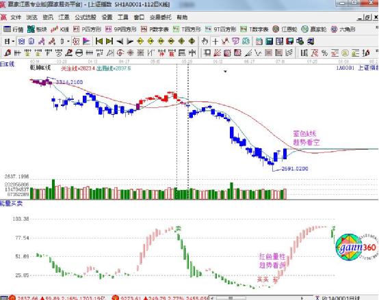 ☆依據(jù)贏家江恩理論系統(tǒng)乾坤K線提示:藍(lán)色K線,波段趨勢仍為空。