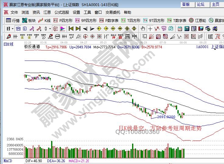 ☆依據(jù)贏家江恩理論系統(tǒng)極反通道提示:滬指短周期15分鐘未能延續(xù)上攻藍(lán)色上軌線,拐頭向下回踩確認(rèn)黑色生命線,收盤正好落在此線上,明天早盤觀察此線得失,收復(fù)站穩(wěn)則向上看至藍(lán)色上軌線2790附近,反之按規(guī)則失守一線看低一線,弱勢(shì)藍(lán)色下軌線是2690位置,日線弱勢(shì)通道波段看空。