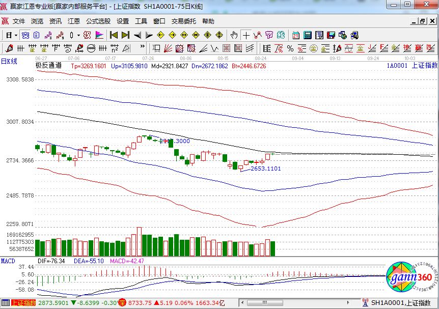 滬指下跌0.11%,報(bào)收2777點(diǎn);深成指上漲0.06%,報(bào)收8733點(diǎn);創(chuàng)業(yè)板下跌0.02%,報(bào)收1493點(diǎn)。從盤(pán)面上看,分散染料、在線旅游、量子通信等板塊漲幅居前;杭州亞運(yùn)會(huì)、公交、可燃冰等板塊跌幅居前。滬股通凈流入6.34億,深股通凈流入9.84億。相應(yīng)的極反通道指標(biāo)的支撐壓力提示,如下圖所示: