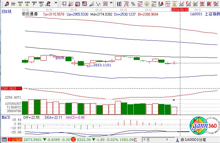 截至收盤,滬指漲0.40%,報收2702點;深成指跌0.02%,報收8322點;創(chuàng)業(yè)板漲0.17%,報收1425點。從盤面上看,黃金、煤炭、機場航運、醫(yī)藥電商、鈦白粉、水泥等板塊漲幅居前;電子發(fā)票、國產(chǎn)軟件、芯片、網(wǎng)絡(luò)安全、5G、集成電路等板塊跌幅居前。滬股通凈流出500萬,深股通凈流出1.2億。相應(yīng)的極反通道指標的支撐壓力提示,如下圖所示: