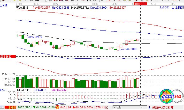 滬指漲1.06%,報收2821點;深成指漲0.80%,報收8401點;創(chuàng)業(yè)板漲0.78%,報收1411點。從盤面上看,稀土永磁、自由貿(mào)易港、海南、新材料、高送轉(zhuǎn)、草甘膦、汽車整車等板塊上漲。滬股通凈流入7億,深股通凈流入10億。相應的極反通道指標的支撐壓力提示,如下圖所示: