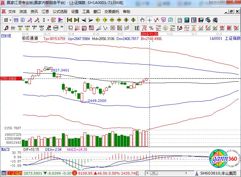 滬指漲0.91%,報收2703點;深成指漲0.58%,報收8108點;創(chuàng)業(yè)板跌0.63%,報收1394點。從盤面上看,水泥、雄安、證券、租售同權(quán)、房地產(chǎn)、深圳國資改革等板塊漲幅居前。滬股通凈流入13.4億,深股通凈流入5.8億。相應的極反通道指標的支撐壓力提示,如下圖所示: