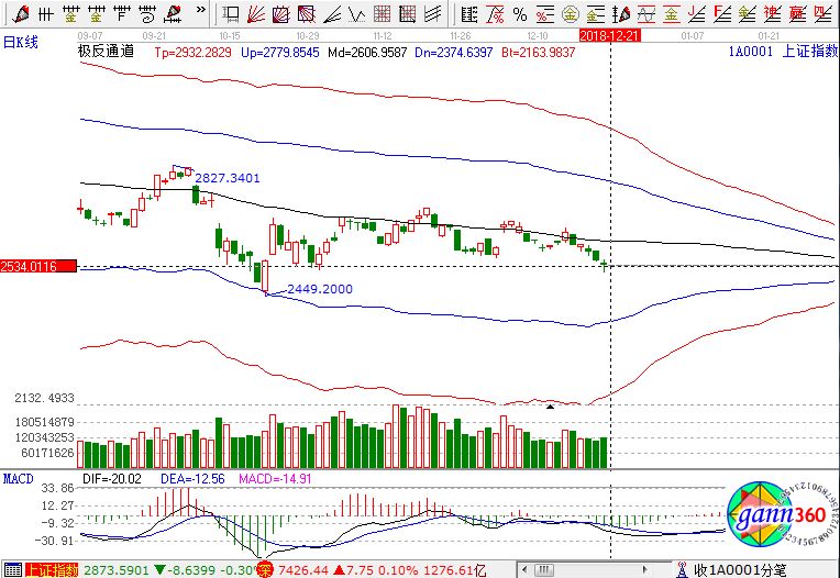 滬指跌0.52%,報收2536點;深成指漲0.10%,報收7426點;創(chuàng)業(yè)板漲0.74%,報收1278點。盤面上看,創(chuàng)投、證券、豬肉、次新股、通信設備等板塊漲幅居前;銀行、白酒、黃金、中字頭股票、汽車整車等板塊跌幅居前。滬股通凈流出8億,深股通凈流出1.4億。相應的極反通道指標的支撐壓力提示,如下圖所示: