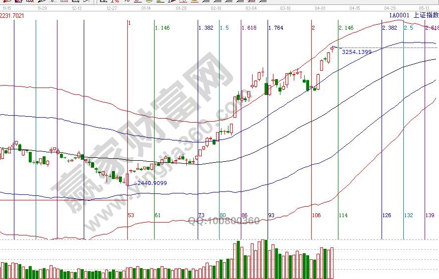 大盤日K線屢創(chuàng)新高向極反通道紅色外軌線邁進,各周期保持上攻勢頭,排除假期不確定性因素外,市場維持趨勢繼續(xù)上行,日線紅色外軌線是3286點;空間方面,波段百分比延伸線3倍循環(huán)180度3360接近,江恩輪中輪135度是3356點【3350附近是多周期共振位,短線、波段均是風險大于機會】,短期壓力是3261、3283點,短期支撐3228點;時間方面,本周是4月時間窗口密集區(qū)間,指數(shù)時間窗口靠近紅色外軌線后短期走勢預期將轉(zhuǎn)復雜。操作策略,日線再度進入超強通道,穩(wěn)健者倉位保持在5成,激進者倉位保持在7成,靠近紅色外軌線持倉遵守提高止賺位策略。