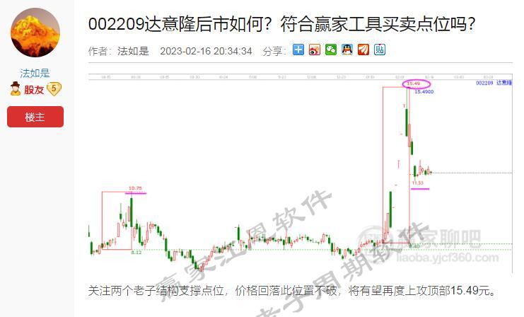 再來看達(dá)意隆的后續(xù)跟蹤,最終達(dá)意隆不偏不倚按照回調(diào)警戒線11.53元-10.75元支撐區(qū)間獲得支撐,股價(jià)再次上攻,空間正在找工具頂部15.49元。老子時(shí)間分別是未來的3月6號、3月9號、3月21號、3月31號。依照十二宮工具信號,趨勢-買賣點(diǎn)-時(shí)間轉(zhuǎn)折點(diǎn)等問題,均能提前做出交易計(jì)劃,實(shí)現(xiàn)低買高賣的波段利潤。