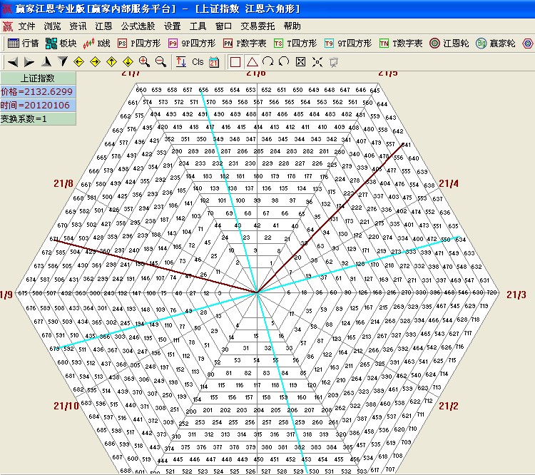 咨詢:13333833889江恩六角形是眾多江恩愛好者學(xué)習(xí)研究的對像之一,網(wǎng)絡(luò)中提供的小插件不是很穩(wěn)定,今天發(fā)現(xiàn)贏家江恩網(wǎng)站有免費(fèi)提供的江恩六角形,發(fā)出來給大家分享;