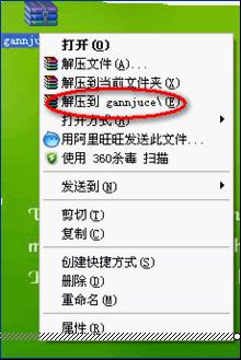 1)右鍵單擊文件,再左鍵單擊解壓到gannjuece