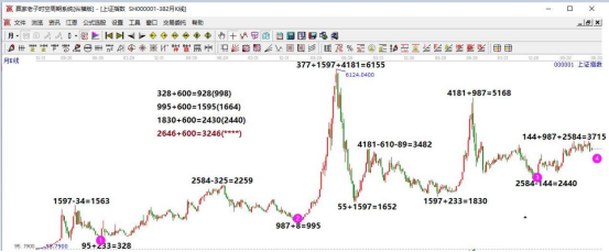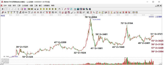 以上表格單數(shù)與雙數(shù)的平方,與滬指歷年來(lái)重要拐點(diǎn)均有著數(shù)字關(guān)系,其中有極度精準(zhǔn)的1849,也有略有差別的325、5178、3478、還有部分相差略大的,但整體也在50個(gè)點(diǎn)以內(nèi),如6124、2440、2245。