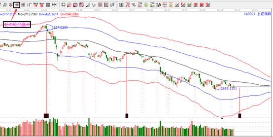(三)實(shí)戰(zhàn)作用:依據(jù)工具所得出的豎線即為時(shí)間窗口,據(jù)此可提前預(yù)測(cè)指數(shù)和股價(jià)的上漲或下跌的時(shí)間周期,判斷可能發(fā)生趨勢(shì)反轉(zhuǎn)的時(shí)間轉(zhuǎn)折點(diǎn)。