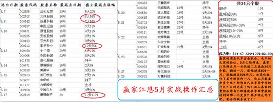 附圖:5月份操作個(gè)股總結(jié),單月成功率繼續(xù)穩(wěn)定在80%以上: