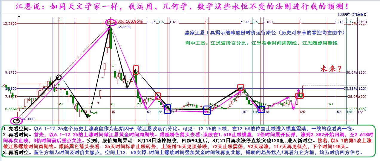贏家江恩工具揭示繼峰股份時(shí)價(jià)運(yùn)行路徑(歷史對(duì)未來的掌控均在圖中)