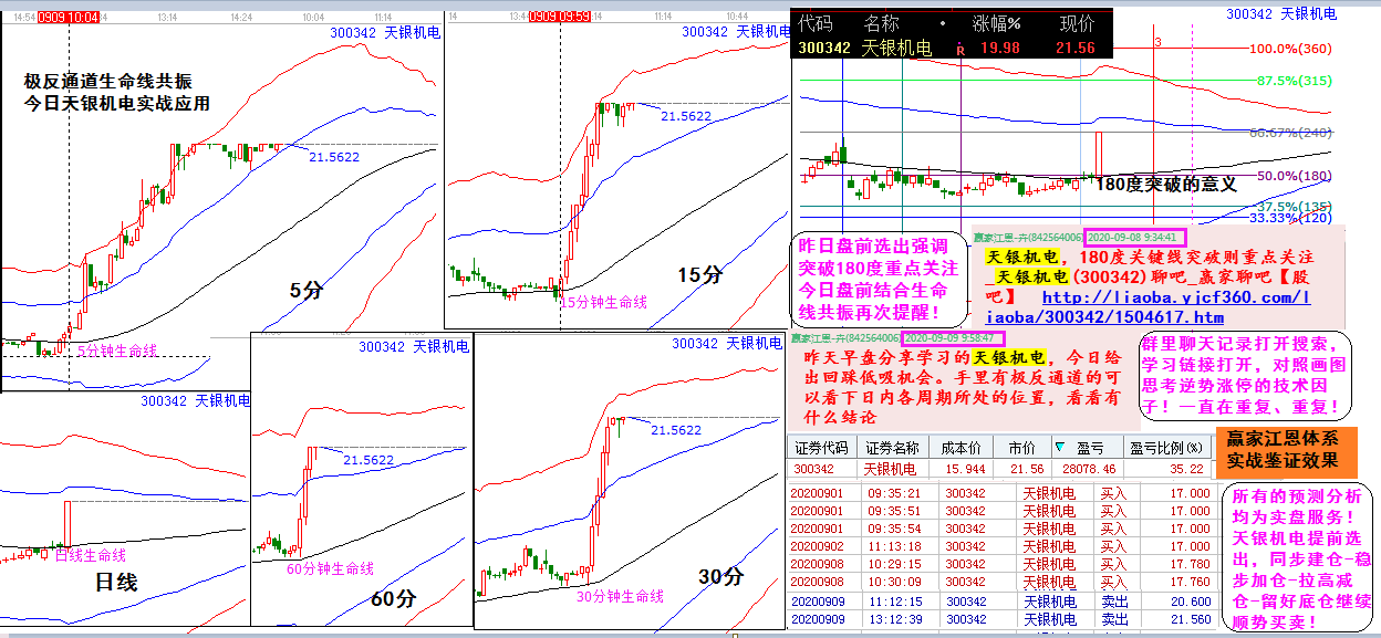 指數(shù)繼續(xù)如期殺跌,空間上已經(jīng)進(jìn)入第一預(yù)期支撐區(qū)間,但時間未到,弱勢反復(fù)再所難免。而如此弱勢的環(huán)境下,贏家江恩按照江恩時空規(guī)則篩選出的天銀機(jī)電,今日逆勢封板20%的利潤回饋給每位認(rèn)真關(guān)注贏家消息,懂得贏家模型與規(guī)則的朋友。今日不闡述具體技術(shù)要點,都在圖中做了標(biāo)注,有心提升的朋友仔細(xì)看。