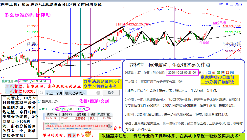 三花智控,10月28日盤前選出,贏家聊吧有詳細的分析圖形及文字解讀;群中同步分享學(xué)習(xí)及實盤交割,今日時間點更是逆勢拉升直達藍線。3個交易日小10%的收益,你抓住了嗎?所有的技術(shù)學(xué)習(xí)和分析,只有一個目的,那就是服務(wù)實盤!跟隨贏家江恩,一起在實戰(zhàn)買賣中,掌握一套適合自己的操盤技術(shù)。