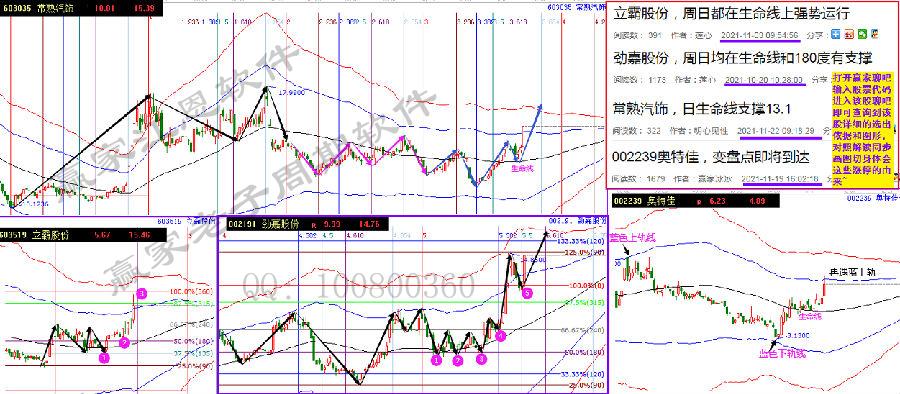 7月19日,按照周日生命線共振模型納入關(guān)注。7月、8月兩波行情上攻藍線和315度受阻后強勢洗盤。日線在3倍時間節(jié)點跌至120度價格位,同時周線在生命線和180度價格位獲得支撐,依托支撐區(qū)間震蕩后,3.382時間股價突破日生命線,日周時價、趨勢形成共振引爆行情。11月17日一根漲停突破315度更一步明確新高方向,今日再度漲停沖出紅色線,本波啟動漲幅達60%!先看日線路徑,再看周線信號疊加,雖然期間顛簸,但該到的自會到。下個時空位,圖中已做標注,用規(guī)則做跟隨,主動權(quán)就在自己手中。