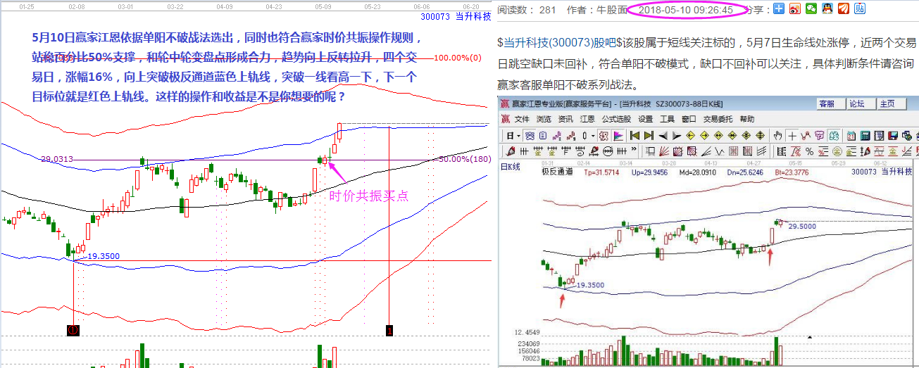 當(dāng)升科技,5月10日贏家江恩依據(jù)單陽不破戰(zhàn)法選出,同時(shí)也符合贏家時(shí)價(jià)共振操作規(guī)則,站穩(wěn)百分比50%支撐,和輪中輪變盤點(diǎn)形成合力,趨勢(shì)向上反轉(zhuǎn)拉升,截止14號(hào)高點(diǎn),三個(gè)交易日,漲幅16%。