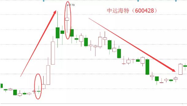 上面的圖形是中原海特在2016年11月份的走勢(shì)圖,從圖中我們可以看到該股走出了兩個(gè)高浪線,一個(gè)而是在11月9日一個(gè)是在11月17日。在9日出現(xiàn)該形態(tài)之后,三根陽(yáng)線進(jìn)一步的強(qiáng)化了這個(gè)變動(dòng)的洗好,所以股價(jià)從9日高浪線開始上升,最后停滯于11月17日的陽(yáng)線高浪線,在第二天行情以一個(gè)長(zhǎng)陰線的方式急速下跌,這就進(jìn)一步的確認(rèn)了高浪線是市場(chǎng)頂部反轉(zhuǎn)信號(hào)的可能性。