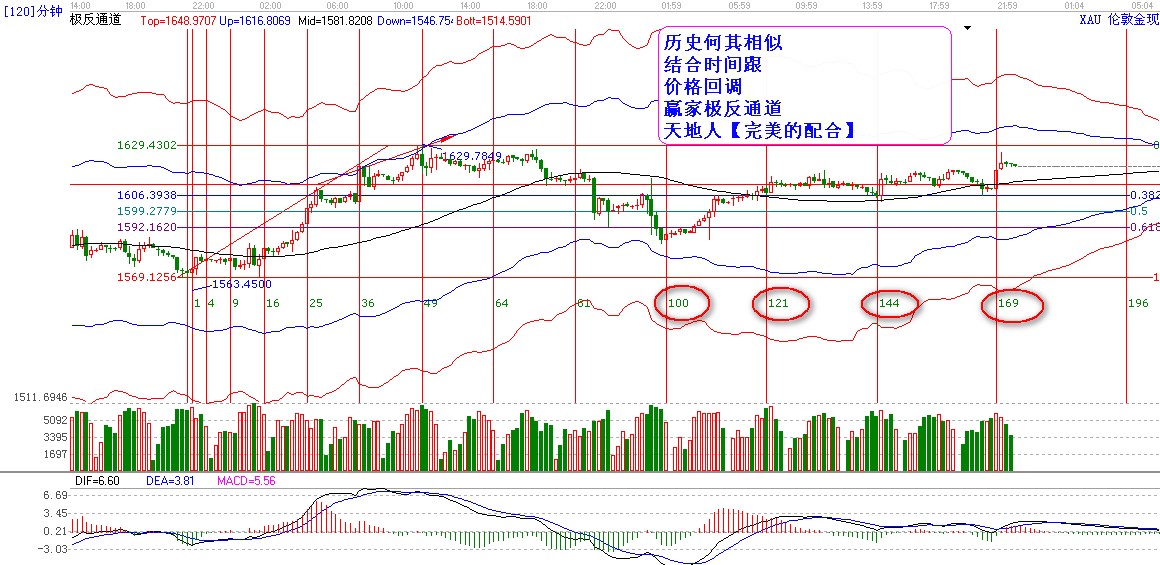 我發(fā)現(xiàn)黃金圖形的時候121時間周期 144周期 169周期 這些都是提前告示大家的,這些是無容置疑的,我們在研究過去的歷史當中會發(fā)現(xiàn),遇到時間窗口都是大陽線,只有2次是暴跌的【壓力位置,極反通道上軌49時間。生命線81時間】其他時間周期均已上漲為主,這樣再次證明了歷史的復制性,并且提前預測。。。。。