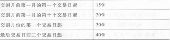 如表所示,自合約掛牌之日開始到交割月前二月的第十個交易日以前,交易所的保證金比例為9%;自交割月前二月的第十個交易日開始至交割月前一月的第一個交易日,交易所的保證金比例為10%。