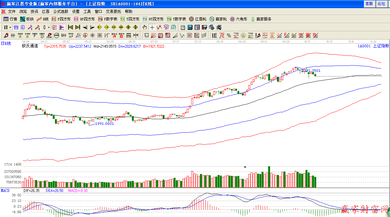 ★依據(jù)贏家江恩系統(tǒng)極反通道提示:在藍(lán)色外軌線之下,繼續(xù)回落,生命線支撐2290附近,短期依然保持謹(jǐn)慎態(tài)度。