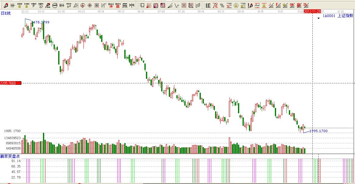 ☆依據(jù)贏家江恩系統(tǒng)乾坤k線提示:大盤還是處于藍(lán)色區(qū)域,看空信號(hào)。