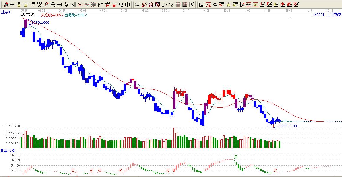 ☆依據(jù)贏家江恩系統(tǒng)乾坤k線提示:大盤還是處于藍(lán)色區(qū)域,看空信號(hào)。