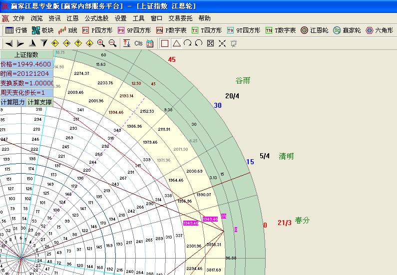 ☆依據(jù)時(shí)間正方形提示:24節(jié)氣12.21大盤遇到輪中輪45度位置,看跌。下一時(shí)間窗口在2013.1.2日了