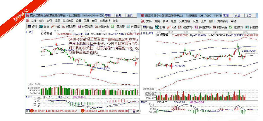 贏家江恩點(diǎn)評(píng):極反通道工具可幫助用戶解決大盤或個(gè)股趨勢(shì)判斷、價(jià)格買賣點(diǎn),在日內(nèi)差價(jià)高拋低吸方面更能提示其優(yōu)勢(shì)。下圖就是贏家江恩股票軟件的極反通道截圖。
