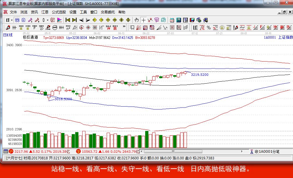 【贏家江恩點評:極反通道工具可幫助用戶解決大盤或個股趨勢判斷、價格買賣點,在日內(nèi)差價高拋低吸方面更能提示其優(yōu)勢?!?/strong>