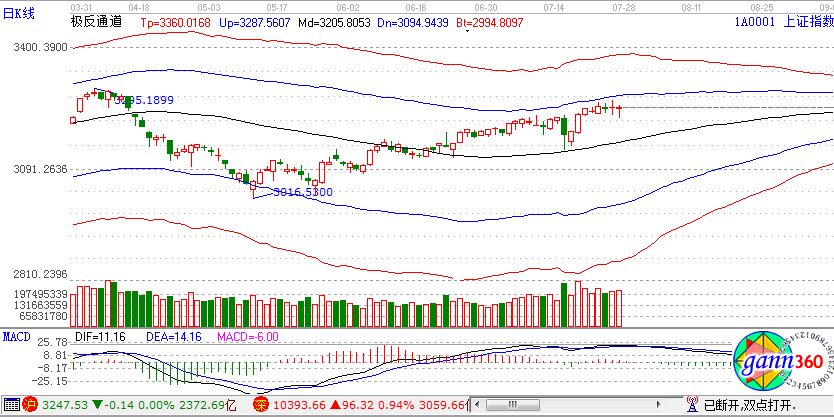 【贏家江恩學(xué)院點評:極反通道工具可幫助用戶解決大盤或個股趨勢判斷、價格買賣點,在日內(nèi)差價高拋低吸方面更能提示其優(yōu)勢?!?/strong>