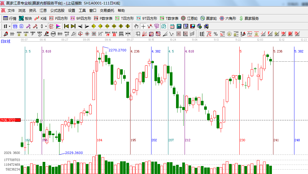 ★依據(jù)贏家江恩系統(tǒng)黃金時間周期線提示:下周一9號為時間點(diǎn),注意K線形態(tài);