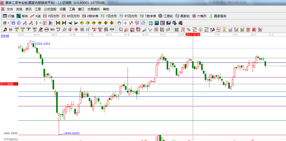 ☆依據贏家江恩系統(tǒng)波段百分比提示:跌破62.5%與66.67%區(qū)間,50%的位置是2150;