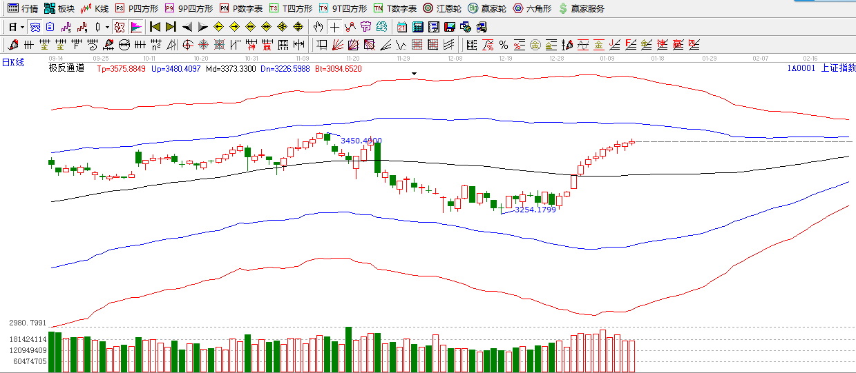 江恩看盤綜述:依據(jù)贏家江恩技術(shù)工具分析得出:周五,滬指再次日線新高,量能持續(xù)縮小,自10日窗口之后量能持續(xù)縮小,是制約指數(shù)空間的主要因素。指數(shù)整理甚至回調(diào)的需求逐步提升。短期還是建議逢高逐步減倉(cāng),謹(jǐn)防出現(xiàn)急速的下跌。支撐依舊關(guān)注3400點(diǎn),3380點(diǎn)附近,1月時(shí)10日之后,下一個(gè)窗口是1月22日附近。操作上,繼續(xù)關(guān)注成長(zhǎng)性良好的超跌股以及個(gè)股的年報(bào)行情。