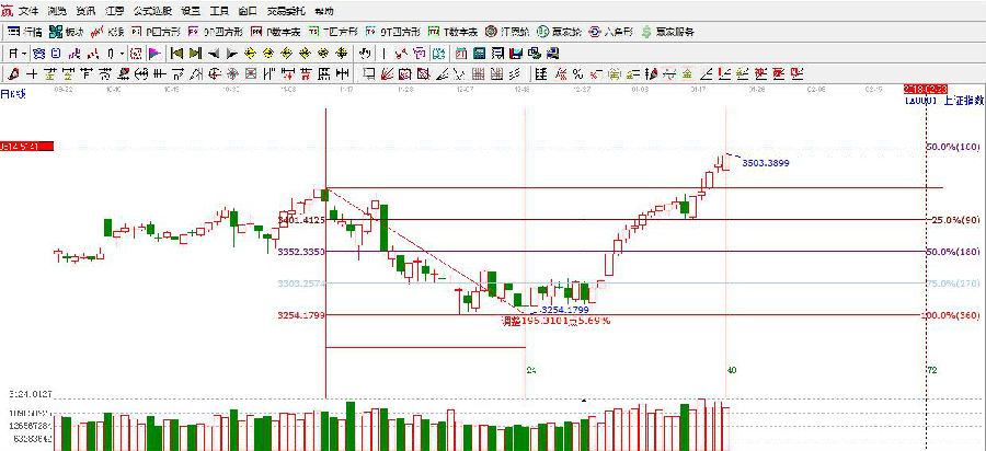 ★依據(jù)贏家江恩理論系統(tǒng)江恩波段百分比提示:滬指延續(xù)強勢,再創(chuàng)新高突破3500點。支撐前期高點3450點,阻力位3450點?! ?/p>