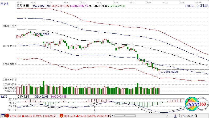 滬指漲0.49%,報(bào)2747點(diǎn);深成指漲0.55%,報(bào)8911點(diǎn);創(chuàng)業(yè)板指漲0.56%,報(bào)1541點(diǎn)。盤面上看,農(nóng)林牧漁、鄉(xiāng)村振興、水泥、無人零售、芯片、數(shù)字中國等板塊漲幅居前;在線旅游、互聯(lián)網(wǎng)彩票、啤酒、ST板塊、粵港澳大灣區(qū)、知識(shí)產(chǎn)權(quán)保護(hù)。滬股通凈流入27億,深股通凈流入18億。相應(yīng)的極反通道指標(biāo)的支撐壓力提示,如下圖所示: