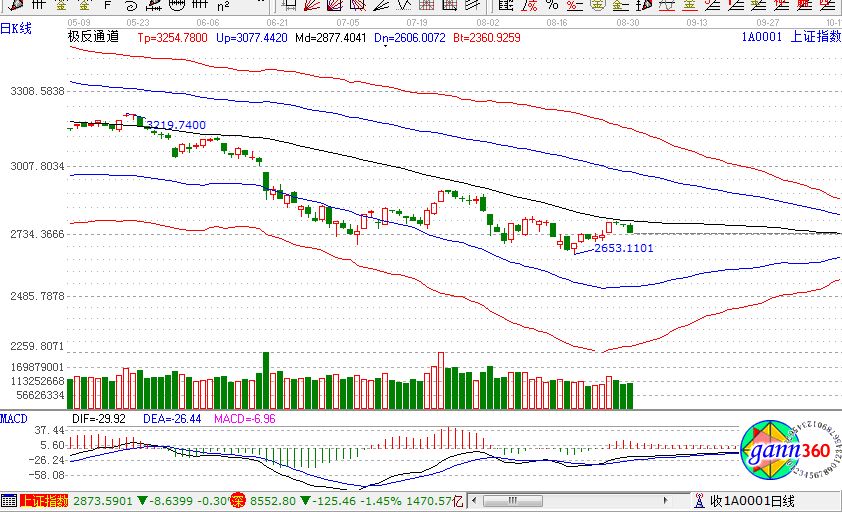 滬指跌1.14%,報(bào)收2737點(diǎn);深成指跌1.45%,報(bào)收8552點(diǎn);創(chuàng)業(yè)板跌1.57%,報(bào)收1457點(diǎn)。從盤面上看,化工新材料、天津自貿(mào)區(qū)、高送轉(zhuǎn)、北汽新能源、白色家電、電力改革等板塊跌幅居前。滬股通凈流入6.4億,深股通凈流入3億。相應(yīng)的極反通道指標(biāo)的支撐壓力提示,如下圖所示: