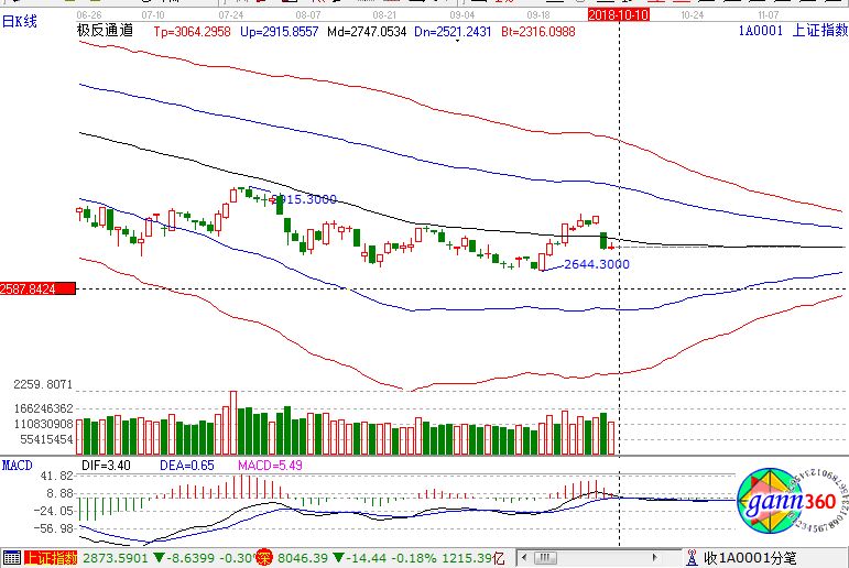 滬指漲0.17%,報收2721點;深成指跌0.18%,報收8046點;創(chuàng)業(yè)板跌0.57%,報收1345點。從盤面上看,石油采掘、煤炭、頁巖氣、次新股、黃金等板塊領(lǐng)漲;機(jī)場航運、軍工、集成電路、國產(chǎn)軟件、醫(yī)藥商業(yè)等板塊領(lǐng)跌。滬股通凈流出21億,深股通凈流出6.7億。相應(yīng)的極反通道指標(biāo)的支撐壓力提示,如下圖所示: