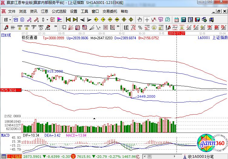 滬指跌0.14%,報(bào)收2575點(diǎn);深成指跌0.27%,報(bào)收7615點(diǎn);創(chuàng)業(yè)板跌0.32%,報(bào)收1304點(diǎn)。盤面上看,福建自貿(mào)區(qū)、水泥、裝配式建筑、港口航運(yùn)、基因測序等板塊漲幅居前;高送轉(zhuǎn)、ST板塊、石油、鋼鐵、黃金等板塊跌幅居前。滬股通凈流入18億,深股通凈流入8億。相應(yīng)的極反通道指標(biāo)的支撐壓力提示,如下圖所示: