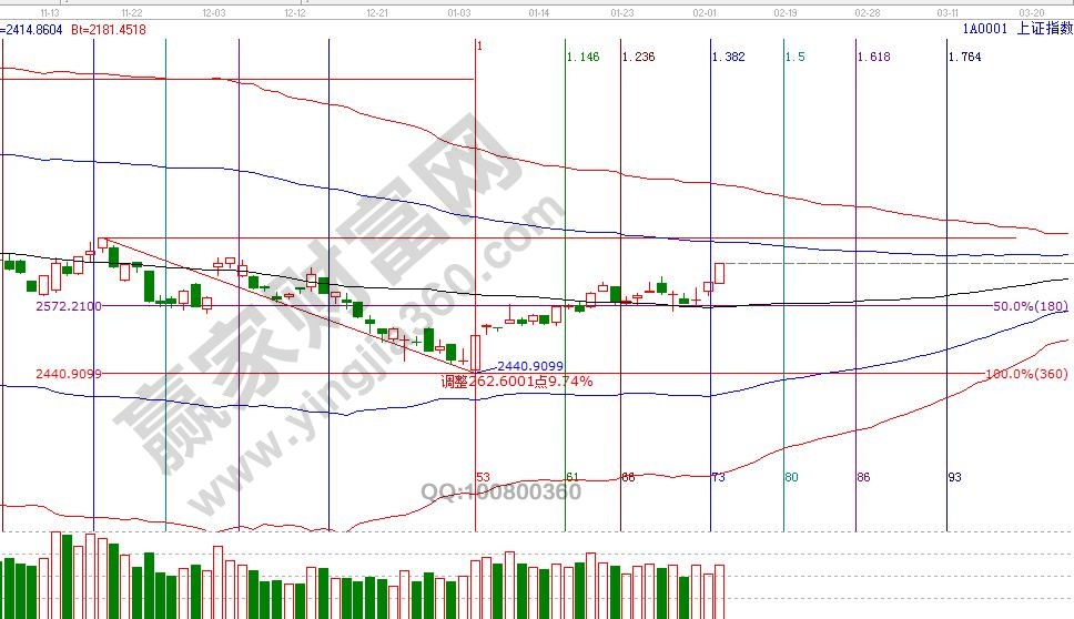大盤日K線從黑色生命線2570點震蕩向藍色上軌線2690點靠近,自2440點反彈已上攻21個交易日,根據(jù)江恩買賣12法則第4條根據(jù)三星期上升或下跌買賣,指數(shù)越靠近藍色上軌線反壓力越大??臻g點位上,轉(zhuǎn)折趨勢線、江恩波段百分比工具顯示,2月12號支撐是2634點,壓力是2672點,時間上2月11、12號是時間窗口。操作策略,大盤日線生命線上安全區(qū)域看多做多,整體倉位保持在4-5成。