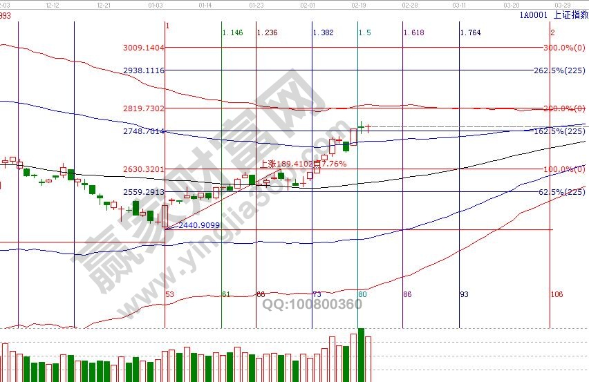 大盤延續(xù)在極反通道超強通道內(nèi)運行,從時間周期和空間循環(huán)綜合看,市場向上運行動作還將延續(xù),距離紅色上軌線2822空間有60點,結(jié)合短周期分析走勢會比較曲折??臻g點位,江恩百分比、江恩四方形顯示,21號支撐是2747、2730點,2775、2778點是壓力,時間窗口是28號。操作策略,大盤日K線從強勢通道進入超強通道,個股波動空間增大,分批高拋藍色上軌線或紅色外軌線壓力個股,倉位切換至生命線附近有量能配合的個股,整體倉位保持在5-6成。