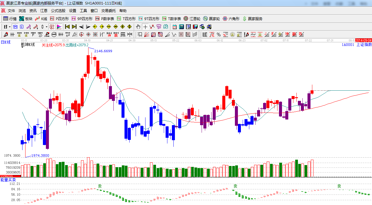 江恩看盤綜述:依據(jù)贏家江恩技術(shù)工具分析得出:周三指數(shù)在藍籌股的帶領(lǐng)下如期攻擊江恩2082-2089區(qū)間,隨后高位震蕩至收盤,創(chuàng)業(yè)板大跌,低估值藍籌強勢護盤,預(yù)計短期大盤繼續(xù)高位震蕩走勢,日線下一時間窗口是7月28日,操作上,關(guān)注低位藍籌股以及受益微刺激的高鐵、核電、特高壓、新能源等概念。