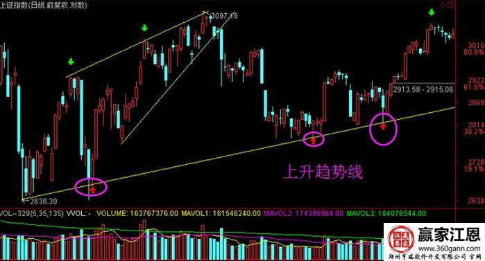 了解過了江恩角度線,我們就再來看一下趨勢線。我們同樣以上證指數(shù)的走勢來做趨勢線,具體如下。
