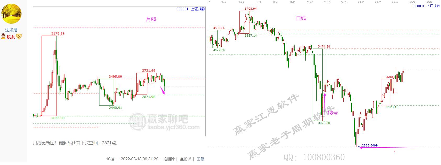 接著3月18號(hào)預(yù)測(cè)上證月線下跌點(diǎn)位2871點(diǎn)?,F(xiàn)在回顧(底部走出預(yù)測(cè)點(diǎn)位,收2863點(diǎn)。)