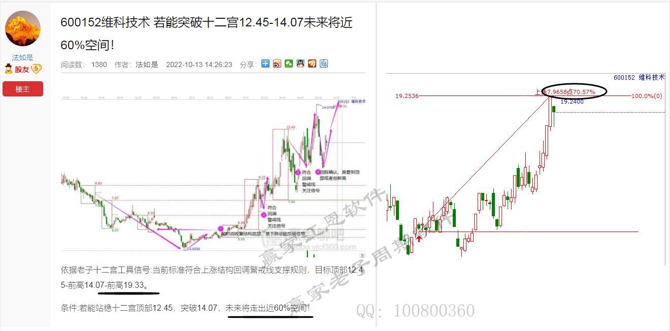 回顧驗(yàn)證:10月13號(hào)運(yùn)用江恩工具信號(hào)選出后,波段持續(xù)上攻!當(dāng)突破預(yù)測(cè)的14.07元開始給板加速抵達(dá)目的地19.33元。空間到達(dá)后,就是止盈位。走出70%上行利潤(rùn)兌現(xiàn)!