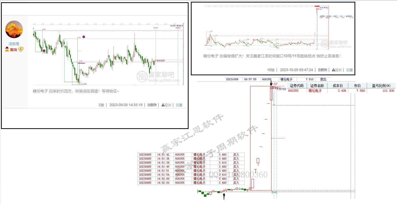 以精倫電子為例,①選股:9月5日根據贏家時空軟件策略工具一鍵選出,符合時間+支撐共振的關注信號。