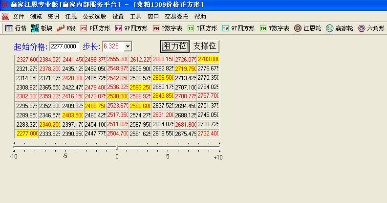 江恩價(jià)格正方形在其江恩理論中是較為常用的分析工具之一,江恩價(jià)格正方形可以把價(jià)格的重要高低點(diǎn)演繹的淋漓盡致。在實(shí)戰(zhàn)中重要的點(diǎn)位經(jīng)常發(fā)生一些重要的轉(zhuǎn)折。有著重要的指導(dǎo)性應(yīng)用。