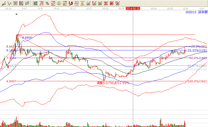 從圖中可以看出如果該股近期突破25%的位置,將繼續(xù)看高一線,如果不能突破我們就需要注意生命線位置的支撐點(diǎn)(7.50附近)了,破了就懂的止損出來(lái)。