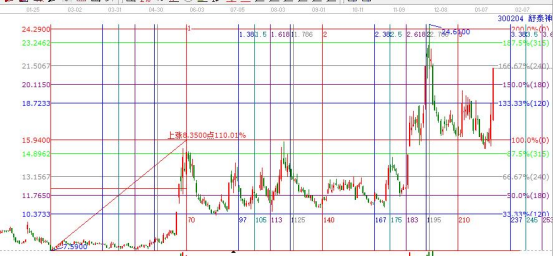 圖中選定股票的特定波動空間后,會對未來股價的拐點產生共鳴。這個特定的波動空間就是該股本輪空間波動的原始循環(huán)波動率(在美國的詞典中波動還有一層解釋是感應、共鳴)。