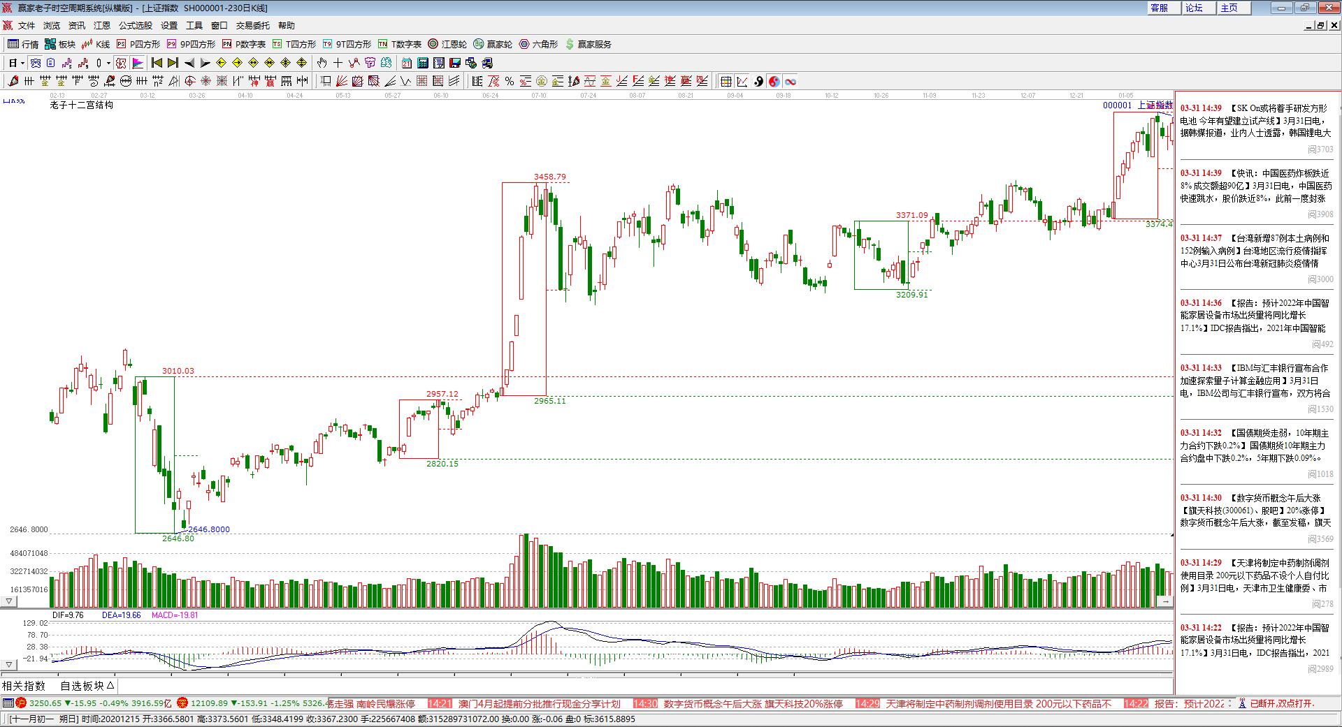 如上圖所示,凡是《贏家老子時(shí)空周期系統(tǒng)》軟件界面展示的綠色框,我們均稱(chēng)為“下跌結(jié)構(gòu)”